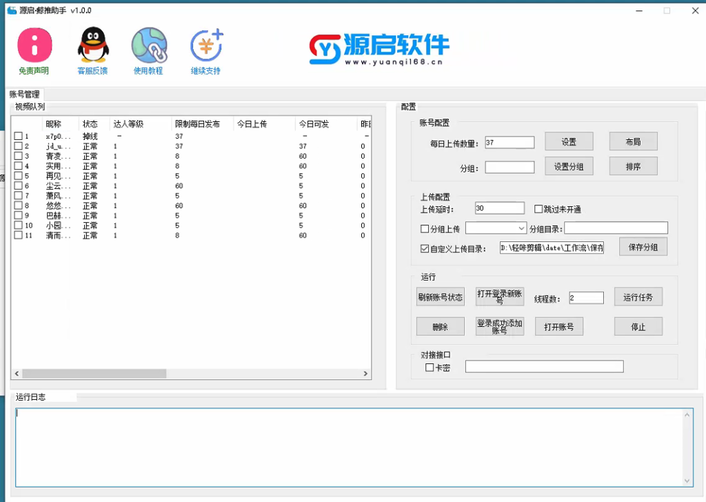 源启·鲸推助手 v1.0.0 软件下载 下载软件 加入VIP 购买软件 软件介绍源启软件(www.yuanqi168.cn)出品的鲸推助手,主要功能有:批量管理账号,批量发布视频,过滑块,分组上传不同的文件夹视频,刷新查询每日播放状态,近七天收益状态,无限制多开,电脑配置带得动就可以多开发布